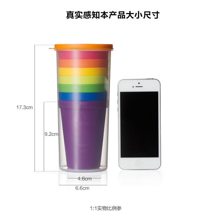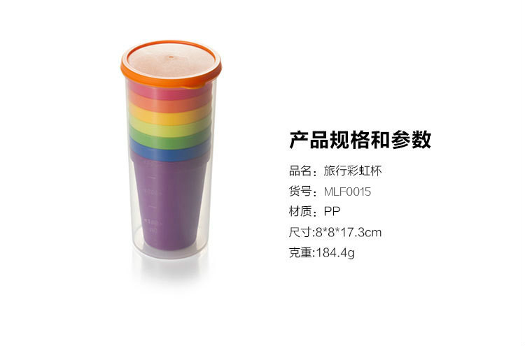 產(chǎn)品特點(diǎn):旅行彩虹杯,PP材質(zhì)更加安全健康,磨砂質(zhì)感,不打滑,邊緣光滑無毛刺,買一得八超劃算